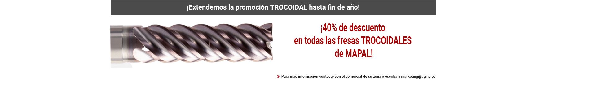 En AYMA Herramientas ampliamos la promoción del Fresado Trocoidal hasta fin de año. Aprovecha el descuento del 40% en toda la gama fresas trocoidales de MAPAL. Una excelente oportunidad para optimizar tus procesos de mecanizado con tecnología de alto rendimiento.